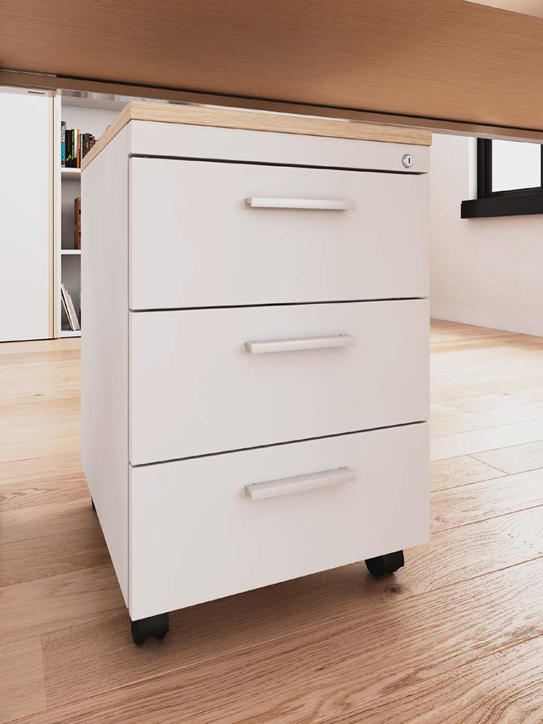Blocos de gavetas standard, rodados ou fixos, totalmente produzidos em Portugal, adequados a qualquer tipo de escritório.